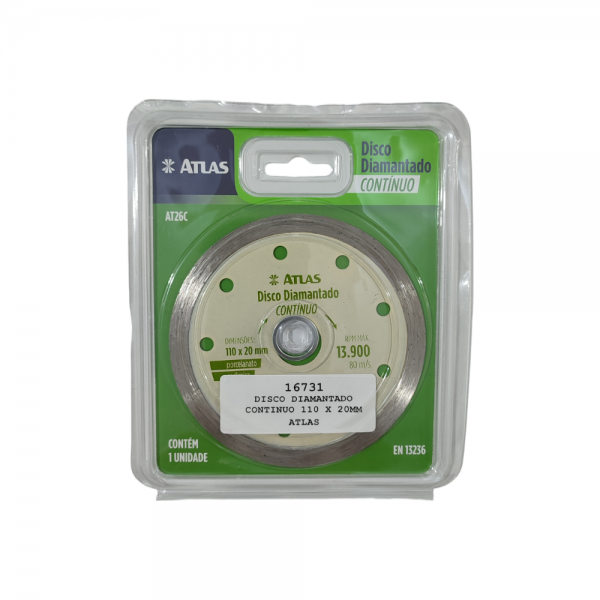 DISCO DIAMANTADO CONTINUO 110 X 20MM ATLAS